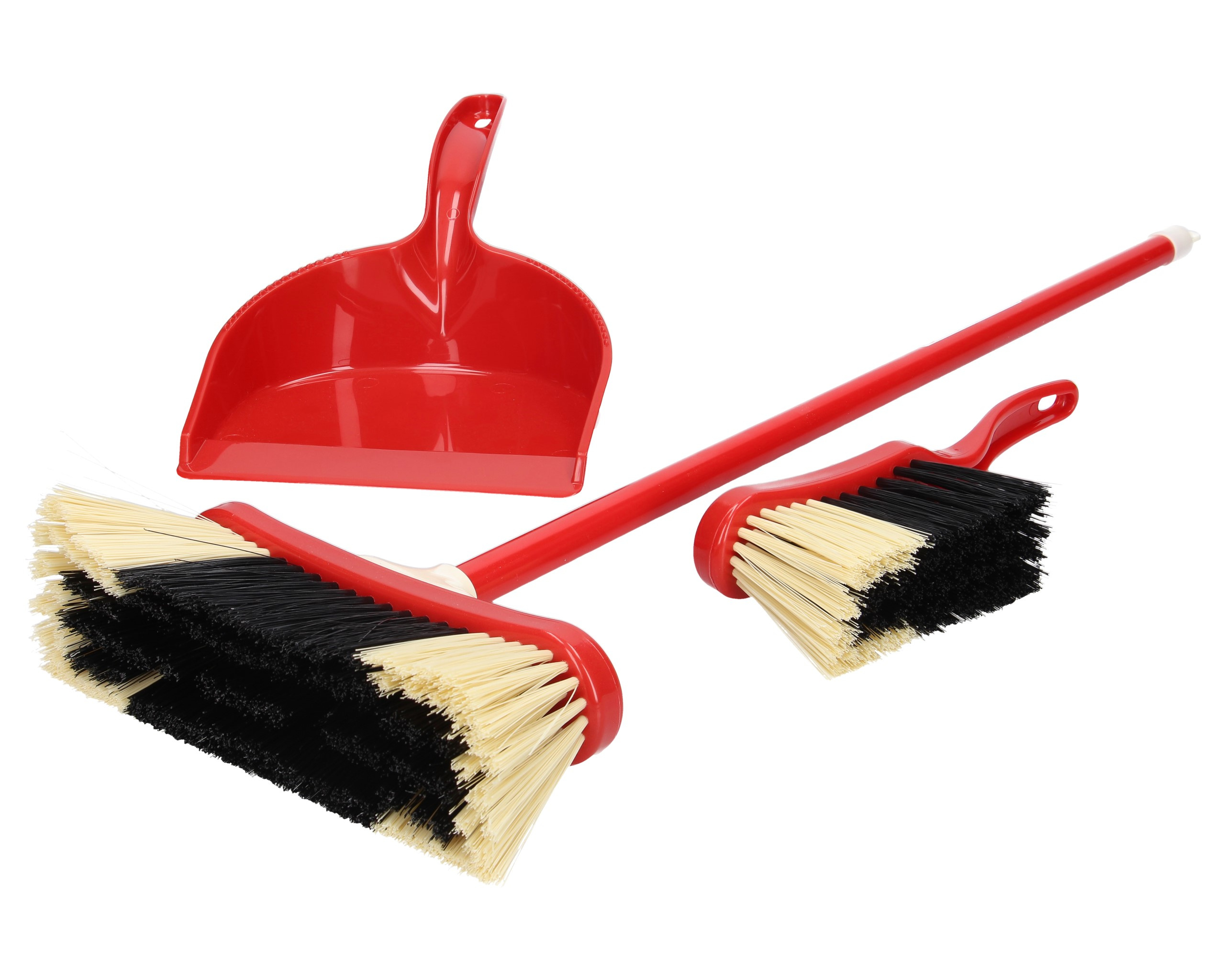 Zestaw do sprzątania klasyczny autorskiej marki Klein - Pure Fresh składa się z miotły na długim kiju, zmiotki i szufelki. Miotła ma 61,5 cm wysokości i 18 cm szerokości. Czarno-białe włosie miotły i zmiotki jest na tyle gęste i trwałe, że spokojnie nadaje się do robienia prawdziwych porządków. Zarówno miotła jak i zmiotka przydaje się świetnie do sprzątania drobnych klocków, czy niewielkich domowych porządków w dziecięcym pokoju. Od prawdziwych akcesoriów odróżnia je tylko wielkość dostosowana dla dzieci. Bawiąc się w sprzątanie domu, dzieci zapoznają się z dorosłymi zadaniami, ćwiczą motorykę i rozwijają swoją wyobraźnię.