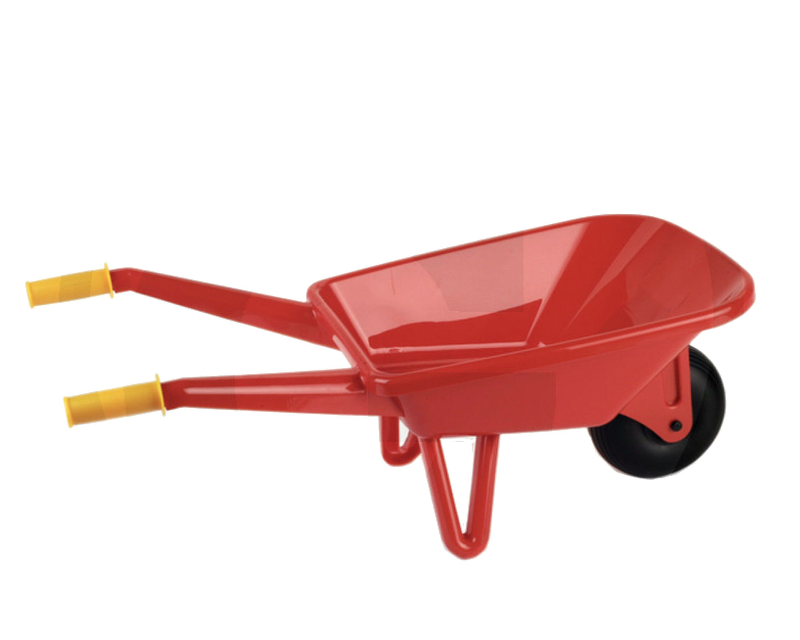 Taczka ogrodowa czerwona została wykonana z plastiku, jest w kolorze intensywnej czerwieni z czarnymi, gumowymi rączkami i dużym czarnym ruchomym kołem. Taczka posiada dwie duże podpory, dzięki którym można ją postawić na ziemie, a wygodne gumowe uchwyty, doskonale dopasowane są rozmiarem do małych, dziecięcych rączek. Taczka stworzona dla małych fanów zabaw na zewnątrz i miłośników ogrodnictwa, którzy planują zabawę w prace w ogrodzie. Nawet najmłodsi mogą bez problemu prowadzić piękną i wytrzymałą taczkę wykonaną z wysokiej jakości tworzywa sztucznego po każdym terenie. Wożenie w taczce jesiennych liści, kamieni albo piasku oraz naśladowanie dorosłych sprawia dzieciom ogromną radość