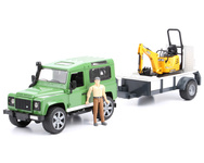 Bruder 02593 Land Rover z przyczepą, minikoparką i figurką